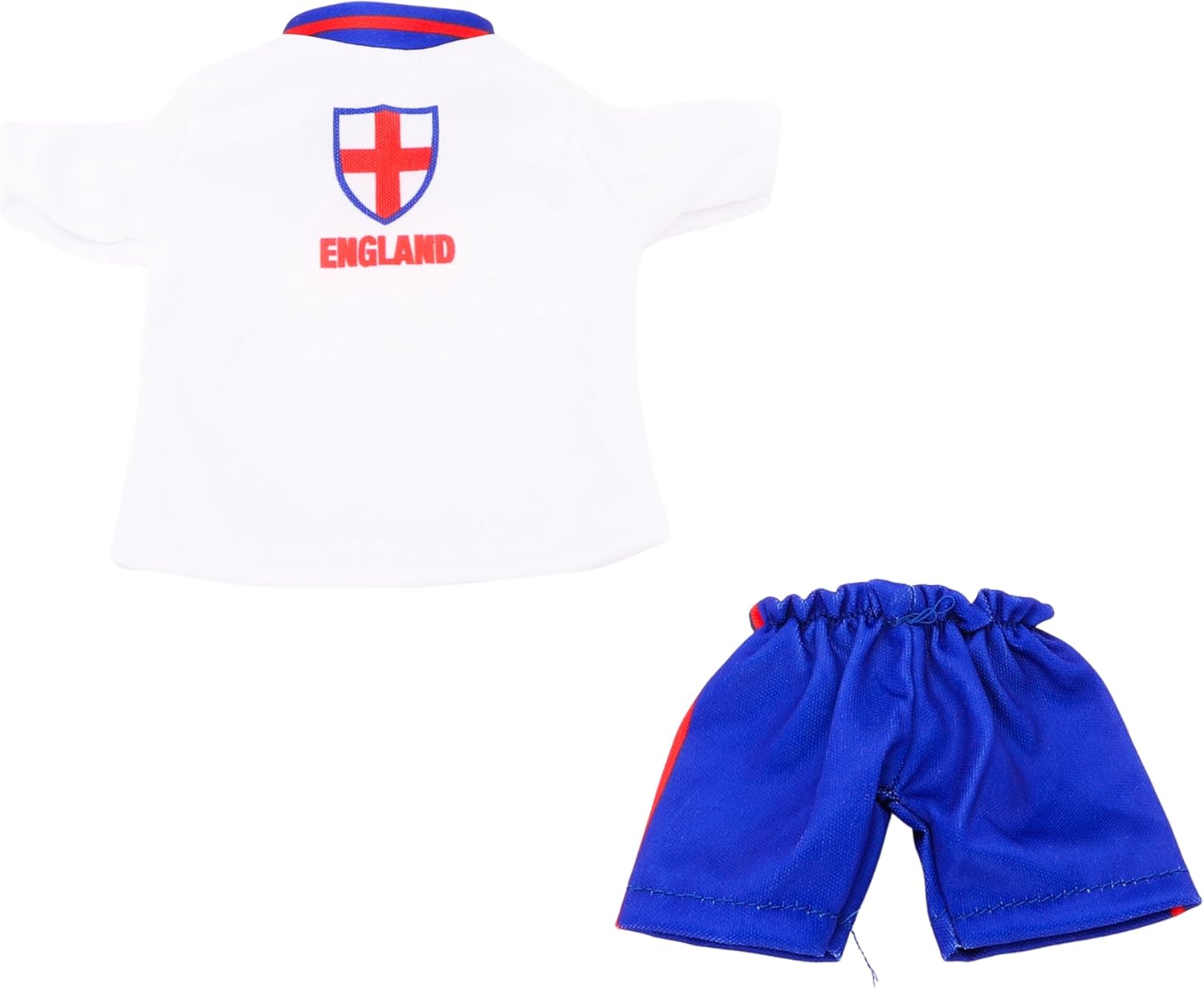 Show your support for the England Team during all major tournaments and competitions! This miniature outfit is perfect for a wide range of elves. You will receive a shirt displaying the St George’s flag and a pair of blue shorts. The t-shirt measures 16 x 12.5cm and the shorts measure 11 x 7.5cm. A fun way for children to get involved in sports and cheer on England with the rest of the family.