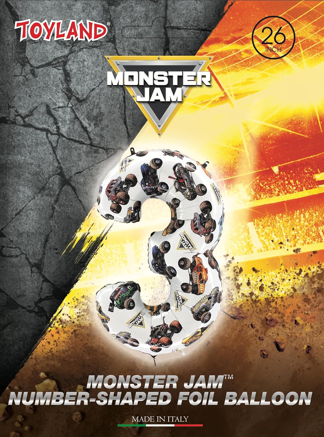Toyland® 66cm (26”) Monster Jam™ Number 3 Foil Balloon – Large Monster Truck Birthday Balloon – Party Decoration, Air or Helium, Self Sealing