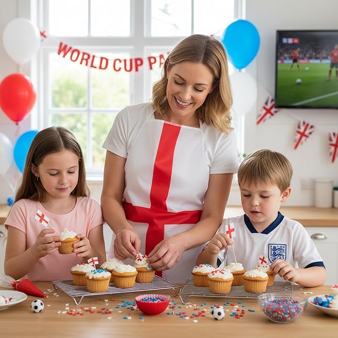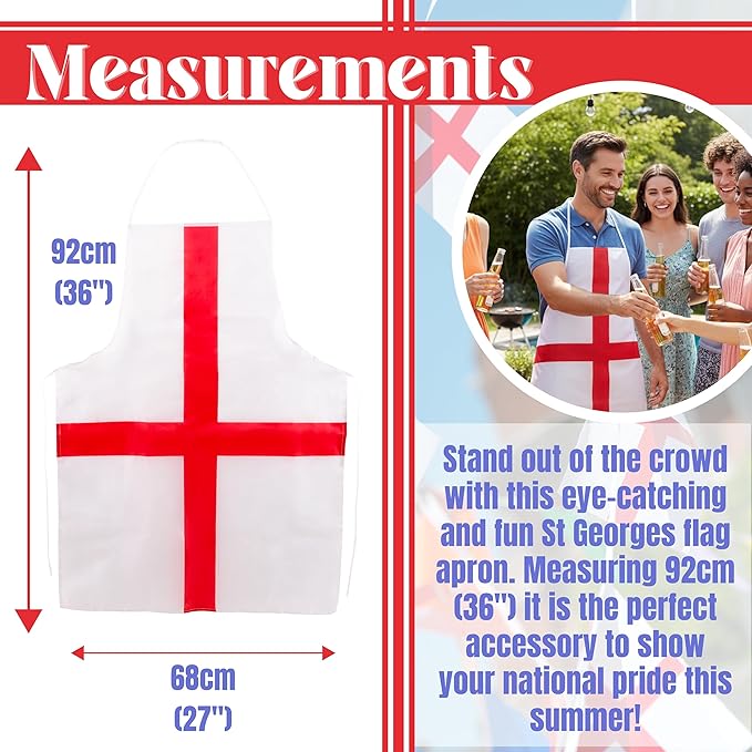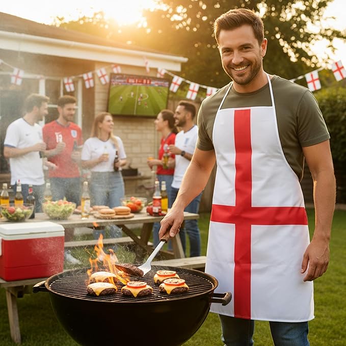 A Great Gift for England Fans: Looking for the perfect gift for an England supporter? This St George’s Cross apron makes a fun and practical present for football fans, home cooks, dads, mums, and proud England supporters. Perfect for birthdays, Father’s Day, BBQs, holidays, or celebrating major football tournaments like the World Cup and Euros.