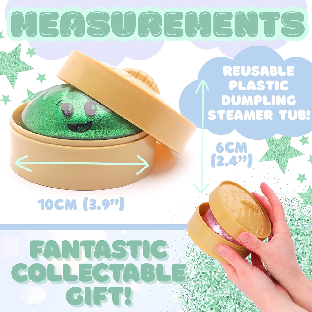 - The bao dumpling measures approximately 8cm (3.1″) in length, and 10cm (3.9″) when packaged inside the reusable plastic steamer box. Perfect for gifting, collecting, party bags, or everyday fidget fun. Suitable for ages 3+.