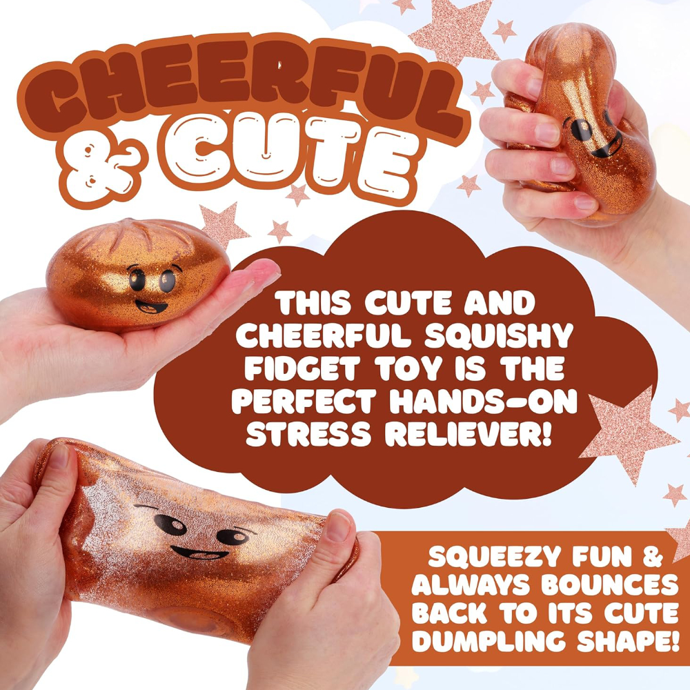 - Squeeze, squish, and smile! This adorable Toyland® Shiny Metallic Squishy Bao Dumpling Sensory Toy is the perfect hands-on stress reliever and fidget toy for kids and adults alike!