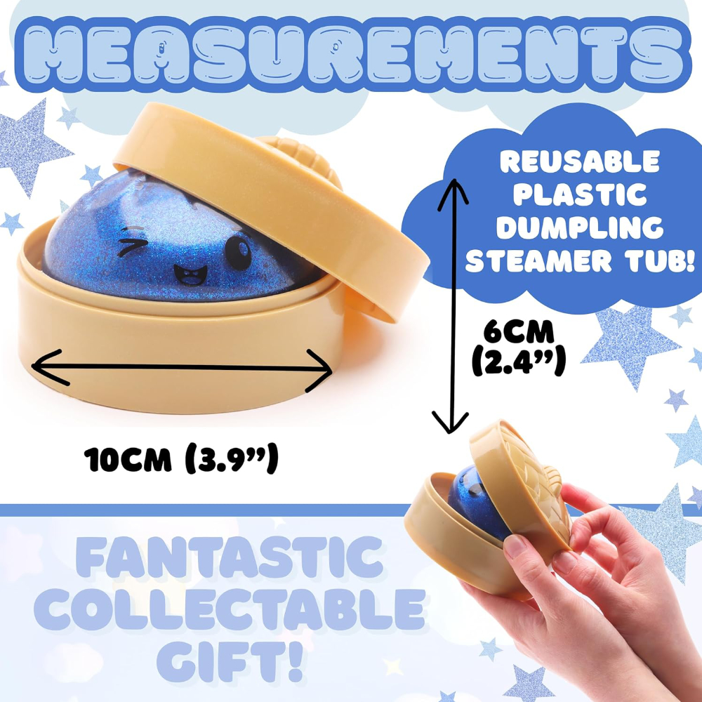 - The bao dumpling measures approximately 8cm (3.1″) in length, and 10cm (3.9″) when packaged inside the reusable plastic steamer box. Perfect for gifting, collecting, party bags, or everyday fidget fun. Suitable for ages 3+.